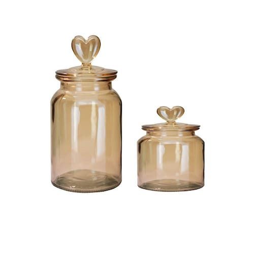 Não perca mais tempo, adquira agora mesmo o nosso Jogo de Potes em vidro âmbar modelo Afeto com tampa hermética decor coração e desfrute de alimentos frescos e bem armazenados em sua cozinha!