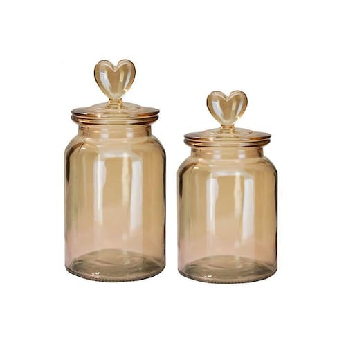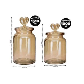 Não perca mais tempo, adquira agora mesmo o nosso Jogo de Potes em vidro âmbar modelo Afeto com tampa hermética decor coração e desfrute de alimentos frescos e bem armazenados em sua cozinha!