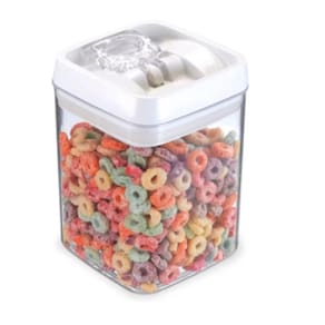Gire o anel para cima para abrir. Gire o anel para baixo para selar Sistema de armazenamento hermético e seco. Livre de BPA recomendado para alimentos secos.