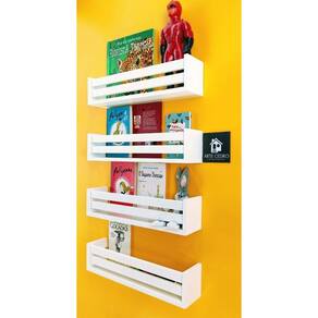 Jogo de Prateleiras Nicho Revisteiro de Parede Quarto Infantil 6un40cm Nichos enviados montados para você, de acabamento perfeito. Qualidade comprovada por nossos clientes. Fabricação artesanal da Arte Cedro decoração O que vem Kit 6 prateleiras modelo livros, brinquedos e multiuso. 2 ripas frontais. Kit de instalação do produto. Nichos para organização e decoração dos ambientes. Podem ser instalados em Várias posições de acordo com sua necessidade. Produto versátil, perfeito para qualquer ambiente, quarto, cozinha, sala, banheiro etc. Fácil instalação, bastando fixar na parede. Suporta até 8 kilos cada. Medidas 40 cm comprimento 12 cm altura 10 cm profundidade Material MDF 15mm com acabamento branco real, superior á pintura em qualidade e durabilidade. Produzido com fita de borda em PVC, incomparável ás de papel utilizadas no mercado. Marca: Arte Cedro