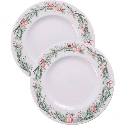 Kit 8 Pratos Rasos Noite Feliz Reto com 28cm De Diâmetro;