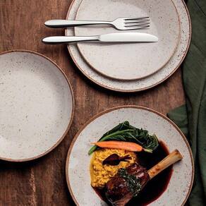 Aparelho de Jantar Jogo de Pratos Fundos Tramontina Rústico Marrom em Porcelana Decorada 6 Peças