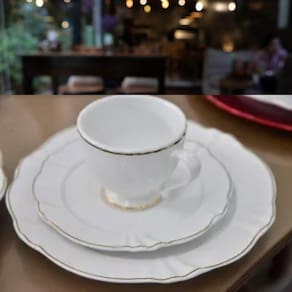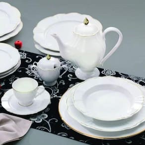 A combinação do branco impecável da porcelana com os detalhes em fio dourado adiciona um toque de glamour e sofisticação aos seus momentos especiais.