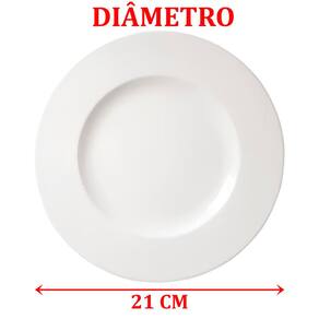 Kit 8 Pratos Sobremesa Aba Larga Branco Com 21cm De Diâmetro;