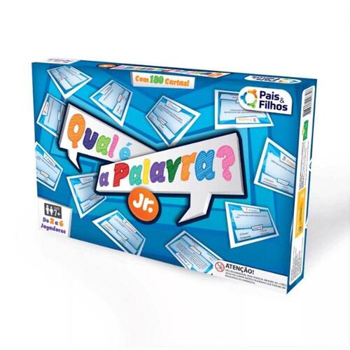 Jogo Qual é A Palavra Júnior - Pais E Filhos Descrição: Chegou a hora da diversão! Com o jogo Qual é a Palavra JR a animação é garantida. Descubra o significado de várias palavras curiosa e teste seu conhecimento. Vence quem completar o percurso do tabuleiro primeiro. Chame a turma toda e divirta-se. Idade: 7 anos+