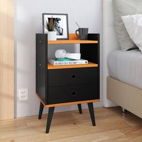 As Mesas de Cabeceira apresentam um design retrô e pés plástico resistente. Possuem duas gavetas amplas e um nicho aberto, ideais para guardar objetos pessoais ou itens decorativos. Estrutura sólida, excelente acabamento e visual que harmoniza com diferentes estilos de decoração.