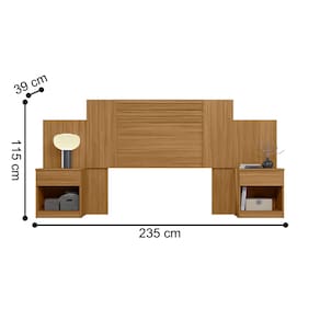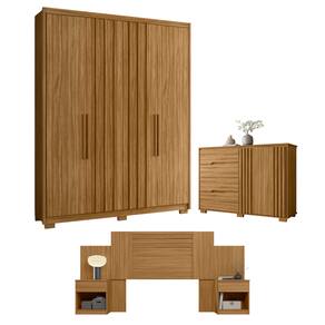 O Conjunto de Cabeceira segue o mesmo design elegante com acabamento ripado e verniz fosco.
