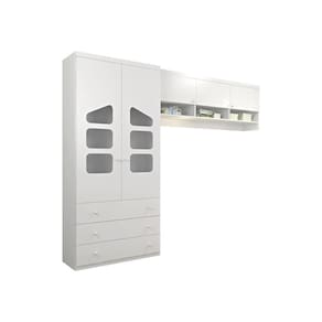 DESCRIÇÃO O Jogo Quarto Infantil Guarda Roupa 02 Portas e Ponte Aérea Eloísa Branco é composto por Guarda Roupa 02 Portas e 03 Gavetas, ponte aérea 03 portas com nichos inferiores que gera a possibilidade de ser como ponte para o berço ou cama, todos com ótimos espaços internos para guardar o enxoval do bebê. Confira e leve já!
