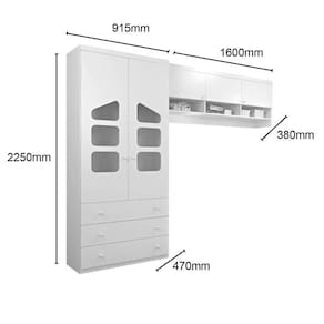 ESPECIFICAÇÕES Dimensão (Largura x Altura x Profundidade) Dimensões do Guarda Roupa 02 Portas: 91,5 x 225 x 47 cm Dimensões do Armário Aéreo: 160 x 67,5 x 38 cm