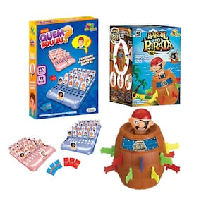 *Jogo Pula Pirata! Reuna os amigos para a diversao Brincar e a melhor parte da infancia.*E brincar em grupo, com os amigos ou com a familia, e ainda melhor.O jogo Pula Pirata ja e um classico ha algumas decadas. Ele é perfeito para promover uma competicao saudavel entre a galera que ja tem 6 anos ou mais. Como se joga Com 2 jogadores a brincadeira ja pode acontecer.O jogo funciona assim: Cada participante, na sua vez, coloca a espadinha no barril. Uma aqui, outra ali... E o clima de suspense fica no ar, pois ninguem sabe quando o pirata vai pular. Mas de repente, ao colocar mais uma espadinha, la vai ele, pulando para fora do barril. Que susto E divertido para valer.Estimula a coordenacao motora E na infancia que a coordenacao motora deve