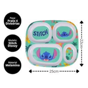 Kit Refeição Infantil Melamina Stitch Disney 7 Peças