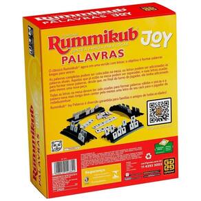 Jogo Rummikub Joy Palavras - GrowO jogo Rummikub Joy Palavras da Grow é a versão divertida do clássico Rummikub, com o desafio de formar palavras longas para vencer. As palavras completas podem ser colocadas na mesa, ou letras adicionadas às palavras atuais, proporcionando uma dinâmica única. No final de cada turno, o jogador deve ter adicionado pelo menos uma nova peça, garantindo pontuação.Diferenciais:desenvolve o pensamento lógico.Promove a criatividade na formação de palavras.Ideal para jogar em família ou com amigos.Mais sobre o Produto:As letras podem ser separadas na mesa e utilizadas para novas palavras.A palavra mais longa formada deve conter pelo menos uma letra inicial do jogador.Todas as palavras devem ser válidas e únicas.Dicas de uso:Planeje sua jogada com antecedência, formando palavras estratégicas.Utilize as letras disponíveis na mesa de forma inteligente para potencializar sua pontuação.Incentive a interação e o raciocínio rápido entre os jogadores, tornando a experiência ainda mais dinâmica.Ficha técnica:Marca: Grow;Nome do produto: Jogo Rummikub Joy Palavras;Idade recomendada: A partir de 7 anos;Selo Inmetro: CE-BRI/ICEPEX-N 01264-25;Contém: 120 Pedras cartonadas, 4 Suportes, 1 Saco plástico, 1 Regras e 1 Bloco de anotações. Homologação Inmetro: CE-BRI/ICEPEX-N 01264-25-33 Marca: Não Informado Ean: 7908010146844