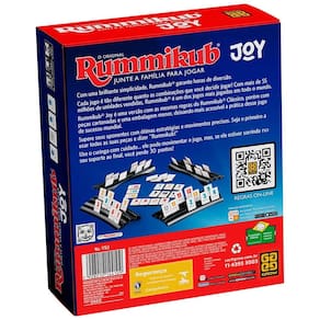 Rummikub Joy é uma versão com as mesmas regras do Rummikub Clássico, porém com peças cartonadas e uma embalagem menor, deixando mais acessível a prática desse jogo de sucesso mundial.