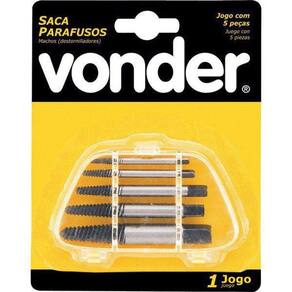Jogo saca parafuso com 5pcs vonder 3599301000 Conteúdo da embalagem:1 jogo de saca-parafusos, composto por um estojo plástico com 5 peças, sendo: nº 1, nº 2, nº 3, nº 4 e nº 5, para parafusos de 1/8 a 3/4 Indicado para retirar parafusos quebrados em peças ou máquinas. Utilizado com o vira-macho (não acompanha). Estojo plástico que facilita a acomodação/organização das peças Material do saca parafusos:Aço carbono Número de peças do jogo de saca parafusos:5 peças Garantia (cdc):Garantia legal: 90 dias