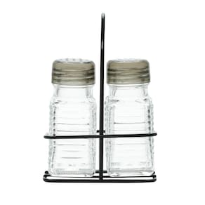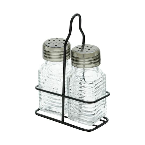 Jogo Saleiro e Pimenteiro de Vidro e Suporte de Metal 70ml