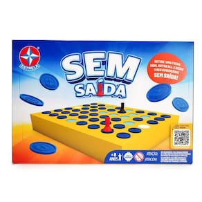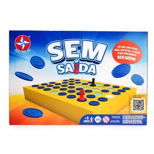Jogo Sem Saída - Brinquedos Estrela O Sem Saída é um jogo recheado de estratégia, onde é necessário deixar seu oponente sem possibilidades de movimentação para ganhar! Movimente seu peão em qualquer direção, mas apenas sobre as fichas azuis, e a cada jogada retire uma ficha estrategicamente. Conforme as peças azuis são retiradas do tabuleiro, as possibilidades de jogadas ficam cada vez mais limitadas. Seja o primeiro a deixar o seu sem saída! Nome do jogo de tabuleiro: Jogo Sem Saída - Brinquedos Estrela | Idade recomendada: + 8 anos | Formato: Físico | Código Inmetro: 001 809 / 2020 Ean: 7896027562019