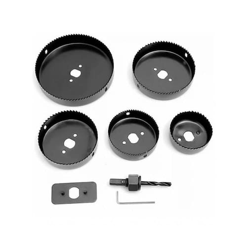 Material: Aço de carbono Pode ser em: gesso, madeira, pvc, etc Acompanha 5 serras Serra 64mm Serra 76mm Serra 89mm Serra 102mm Serra 127mm Chave Allen para fixação na furadeira
