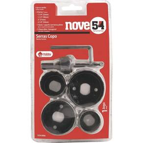 Jogo Serra Copo Aço Carbono 32-54mm Hobby Para Madeira Com 6 Conteúdo da embalagem 1 Jogo de serras copo, sendo: 1 suporte com broca piloto, 1 chave allen e 4 serras: 32 mm - , 38 mm - , 44 mm - e 54 mm - Aplicações e dicas de uso Indicado para chapas finas de madeiras e derivados. Uso leve. Destaques e diferenciais Permite a realização de furos com grandes diâmetros em tempo reduzido DETALHES TÉCNICOS