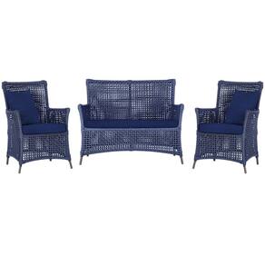 Jogo Sofá e 2 Poltronas de Área Igapó Alumínio Pintura Marrom Corda Náutica Estofado 10 Trama - Azul