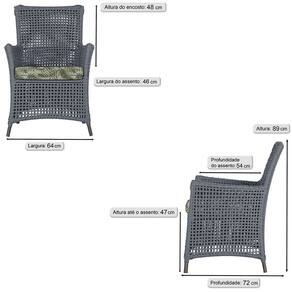 Jogo Sofá e 2 Poltronas de Área Igapó Alumínio Pintura Marrom Corda Náutica Estofado 5 Trama - Prata