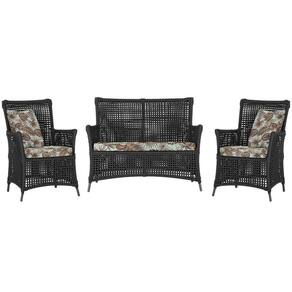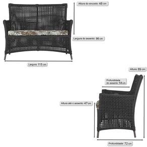 Jogo Sofá e 2 Poltronas de Área Igapó Alumínio Pintura Marrom Corda Náutica Estofado 6 Trama - Preto