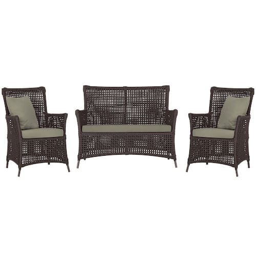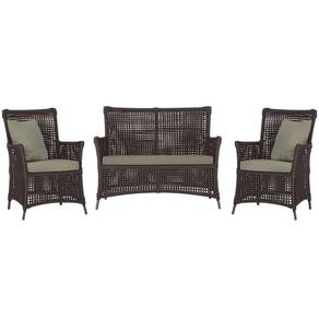 Jogo Sofá e 2 Poltronas de Área Igapó Alumínio Pintura Marrom Corda Náutica Estofado 8 Trama - Marrom Escuro
