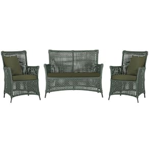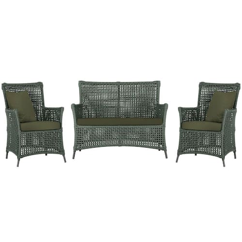 Jogo Sofá e 2 Poltronas de Área Igapó Alumínio Pintura Preta Corda Náutica Estofado 13 Trama - Verde