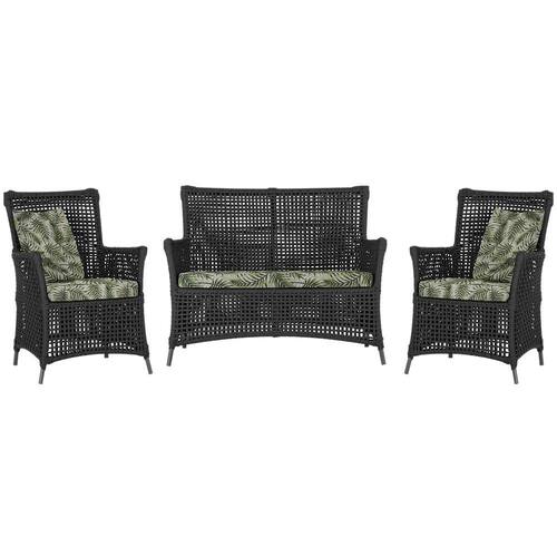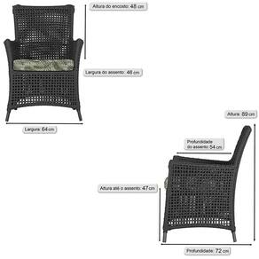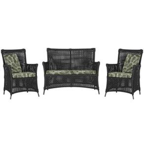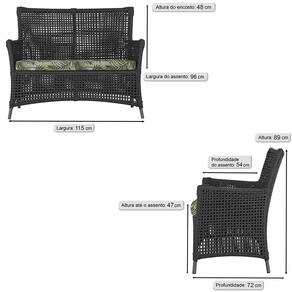 Jogo Sofá e 2 Poltronas de Área Igapó Alumínio Pintura Preta Corda Náutica Estofado 5 Trama - Preto