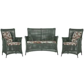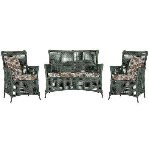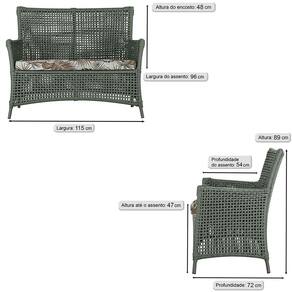 Jogo Sofá e 2 Poltronas de Área Igapó Alumínio Pintura Preta Corda Náutica Estofado 6 Trama - Verde