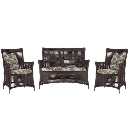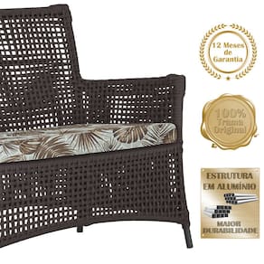 Jogo Sofá e 2 Poltronas de Área Igapó Alumínio Pintura Preta Corda Náutica Estofado 6 Trama - Marrom