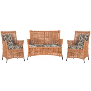Jogo Sofá e 2 Poltronas de Área Igapó Alumínio Pintura Preta Corda Náutica Estofado 6 Trama - Laranja