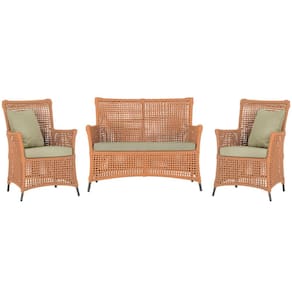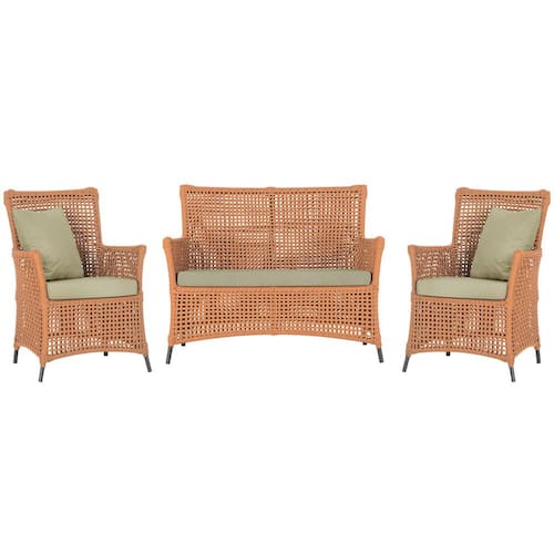 Jogo Sofá e 2 Poltronas de Área Igapó Alumínio Pintura Preta Corda Náutica Estofado 7 Trama - Laranja