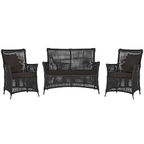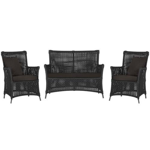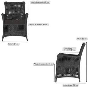 Jogo Sofá e 2 Poltronas de Área Igapó Alumínio Pintura Preta Corda Náutica Estofado 9 Trama - Preto