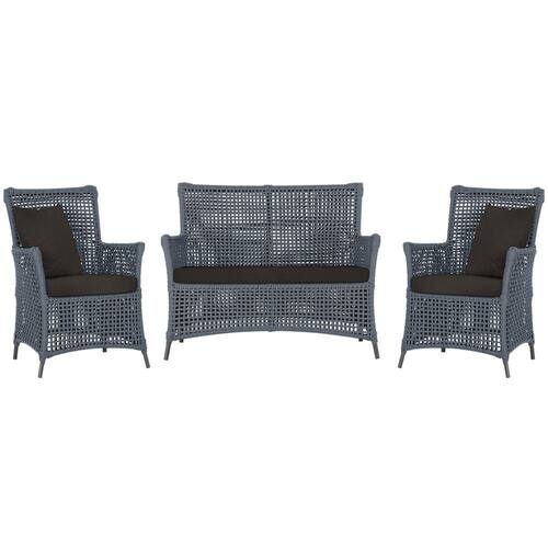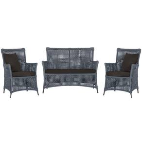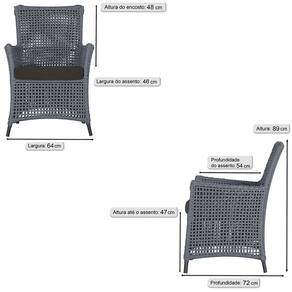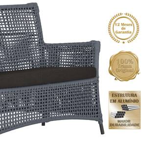Jogo Sofá e 2 Poltronas de Área Igapó Alumínio Pintura Preta Corda Náutica Estofado 9 Trama - Prata