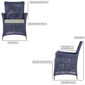Feita em alumínio com uma sofisticada micro pintura, esta Sofá e Poltronas é a combinação perfeita de estilo e resistência. A corda náutica adiciona um toque de rusticidade moderna, enquanto o estofado impermeável garante que sua Sofá e Poltronas esteja sempre impecável, mesmo após uma chuva inesperada ou um acidente com líquidos. Adicione um toque de sofisticação e conforto ao seu espaço com a Sofá e Poltronas Igapó.
