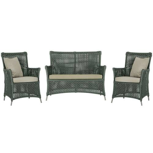 Jogo Sofá e 2 Poltronas de Área Igapó Alumínio - Verde Musgo