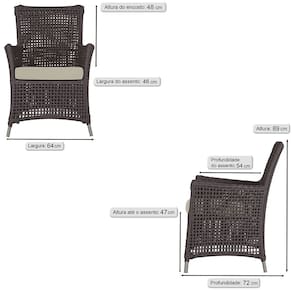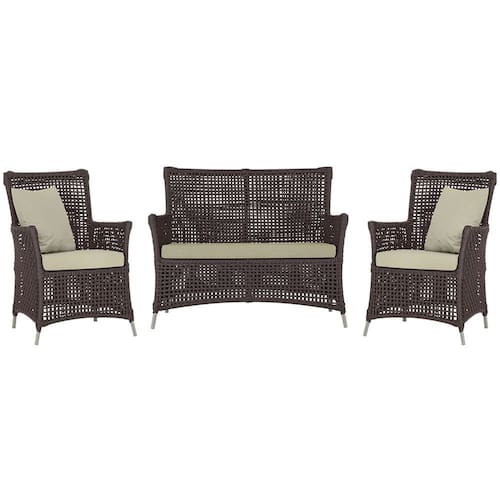 Jogo Sofá e 2 Poltronas de Área Igapó Alumínio - Marrom