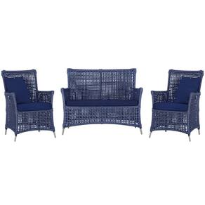 Jogo Sofá e 2 Poltronas de Área Igapó Alumínio - Azul