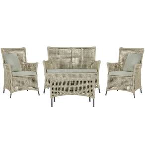 Jogo Sofá e 2 Poltronas e Mesa Igapó Alumínio - Bege Médio