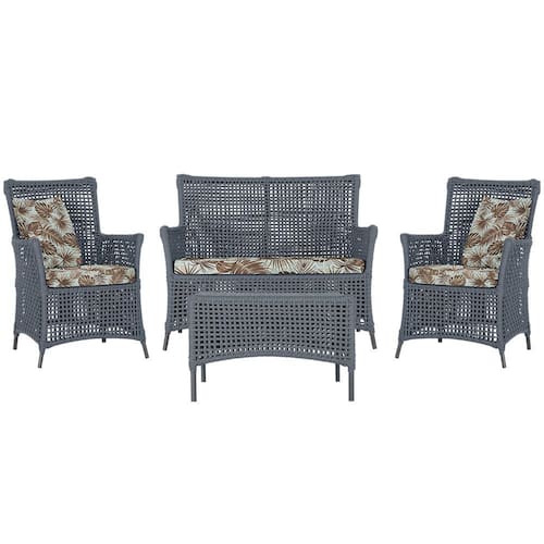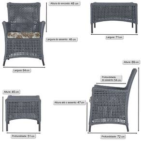 Jogo Sofá e 2 Poltronas e Mesa Igapó Alumínio - Prata