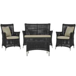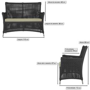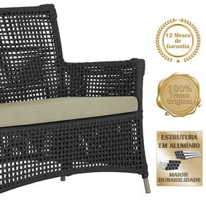 Jogo Sofá e 2 Poltronas e Mesa Igapó Alumínio - Preto