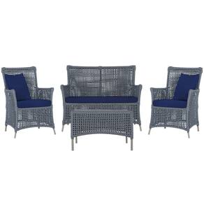 Jogo Sofá e 2 Poltronas e Mesa Igapó Alumínio - Prata