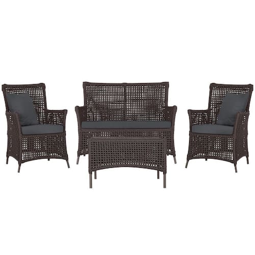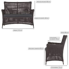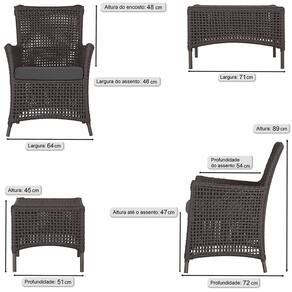 Jogo Sofá e 2 Poltronas e Mesa Igapó Alumínio - Marrom Chocolate