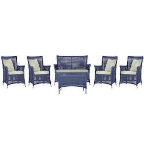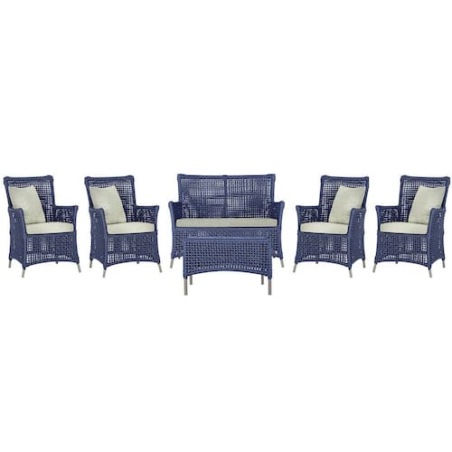 Jogo Sofá e 4 Poltronas e Mesa Igapó Alumínio - Azul