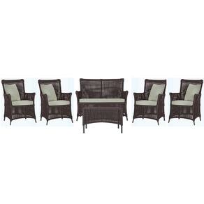 Jogo Sofá e 4 Poltronas e Mesa Igapó Alumínio - Marrom Chocolate