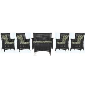 Jogo Sofá e 4 Poltronas e Mesa Igapó Alumínio - Preto