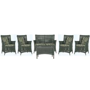 Jogo Sofá e 4 Poltronas e Mesa Igapó Alumínio - Verde Musgo