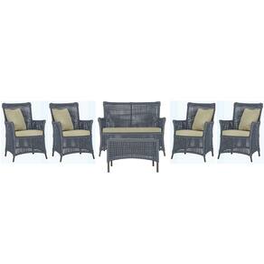 Jogo Sofá e 4 Poltronas e Mesa Igapó Alumínio - Bege Médio