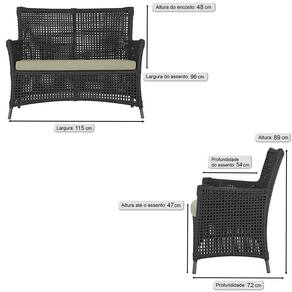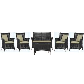Jogo Sofá e 4 Poltronas e Mesa Igapó Alumínio - Preto