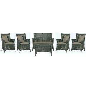 Jogo Sofá e 4 Poltronas e Mesa Igapó Alumínio - Verde Musgo